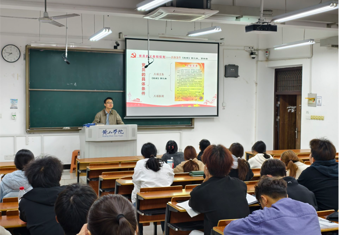 学院党委高度重视2025级新生入党启蒙教育工作,成立了以院党委书记为组长的宣讲团队,6名党委委员围绕党的基本知识、党员条件、入党动机、发展程序等核心内容,为新生分别开展6场专题讲座。宣讲结合学校实际,通过理论讲解与案例分析相结合的方式,深入浅出地阐释党的性质、宗旨和使命。例如,在“端正入党动机”专题中,党委委员以优秀党员事迹为切入点,引导新生思考“入党为什么、为党做什么”,帮助新生从思想深处树立正确的政治追求。