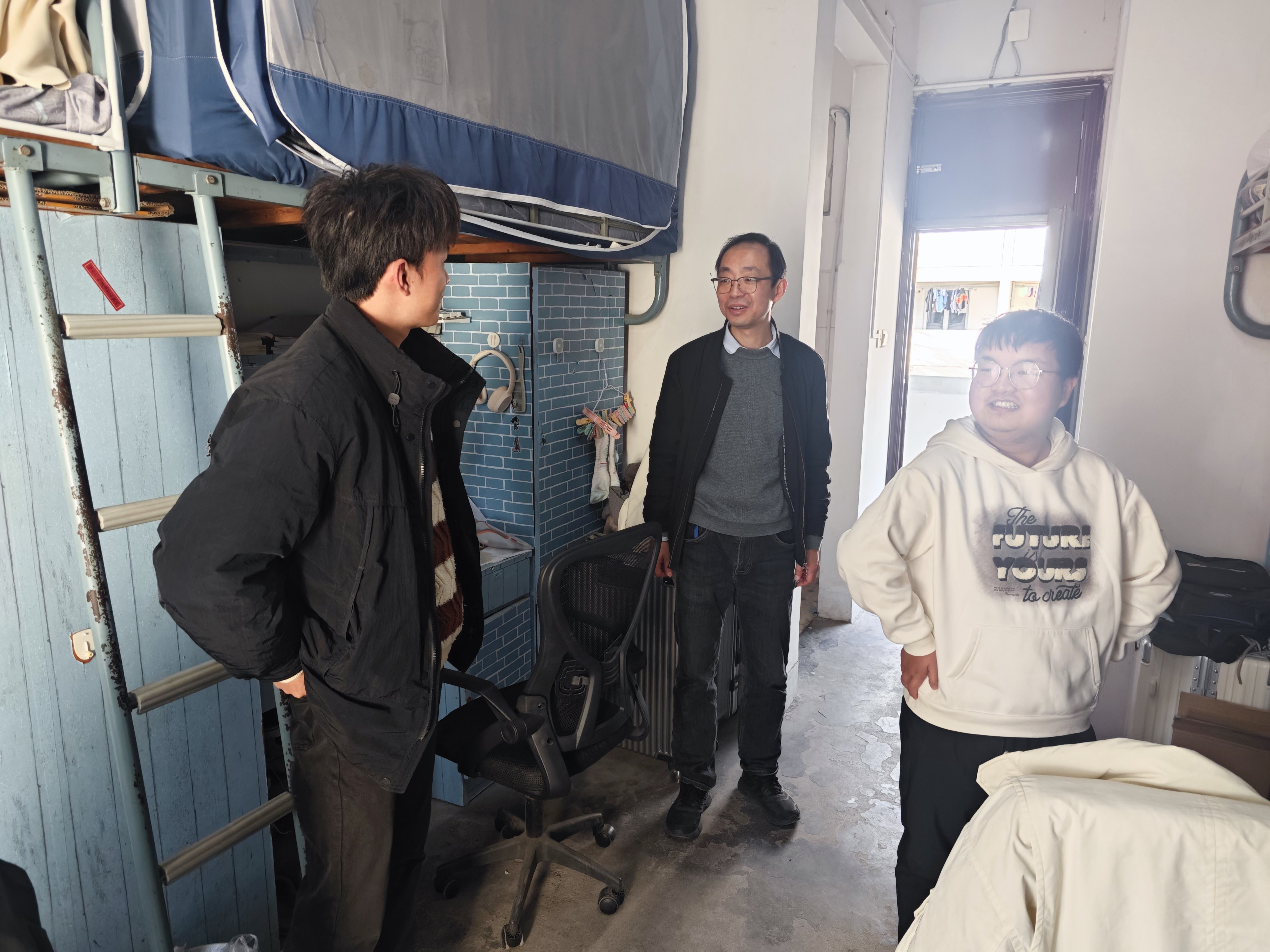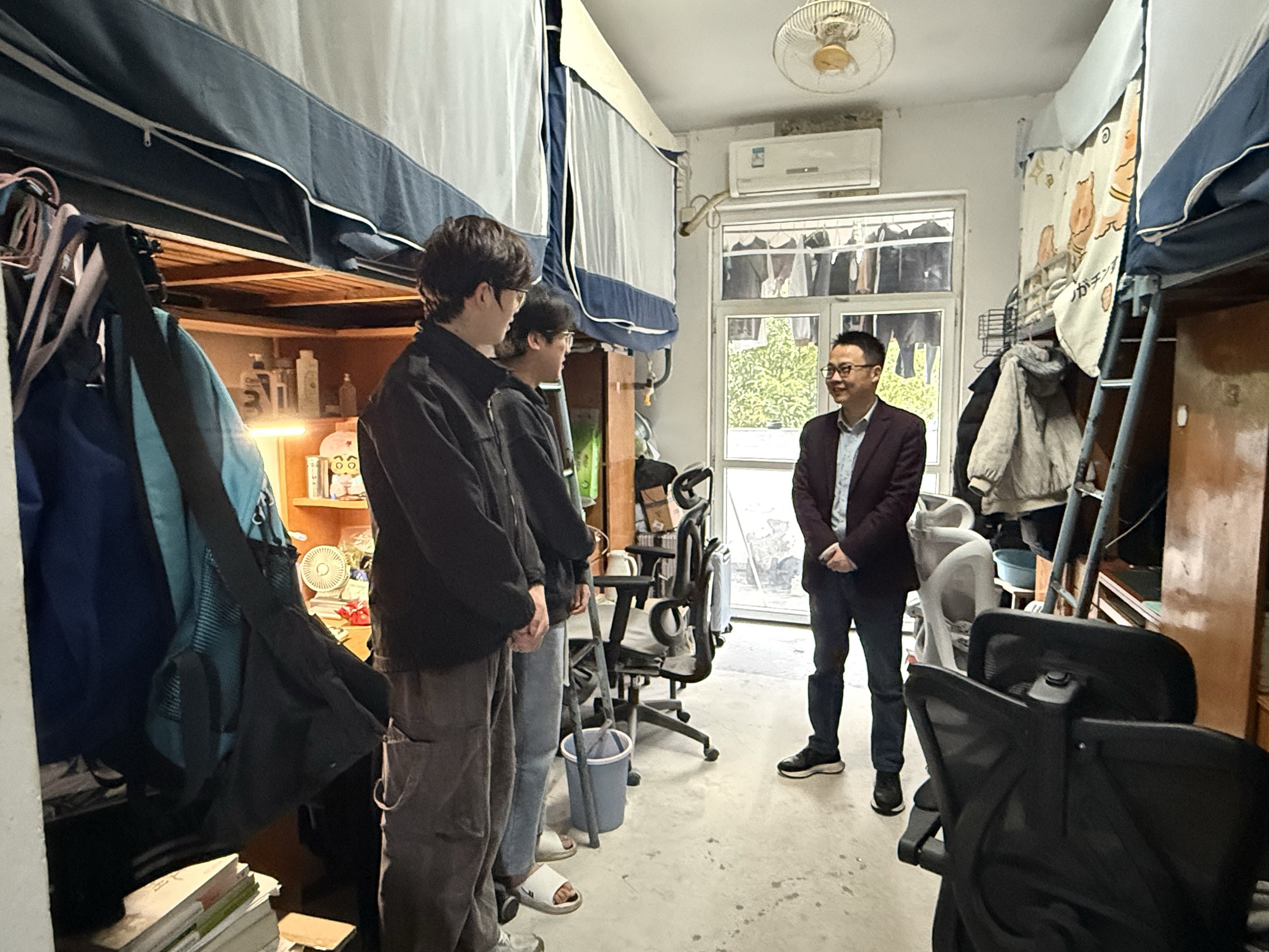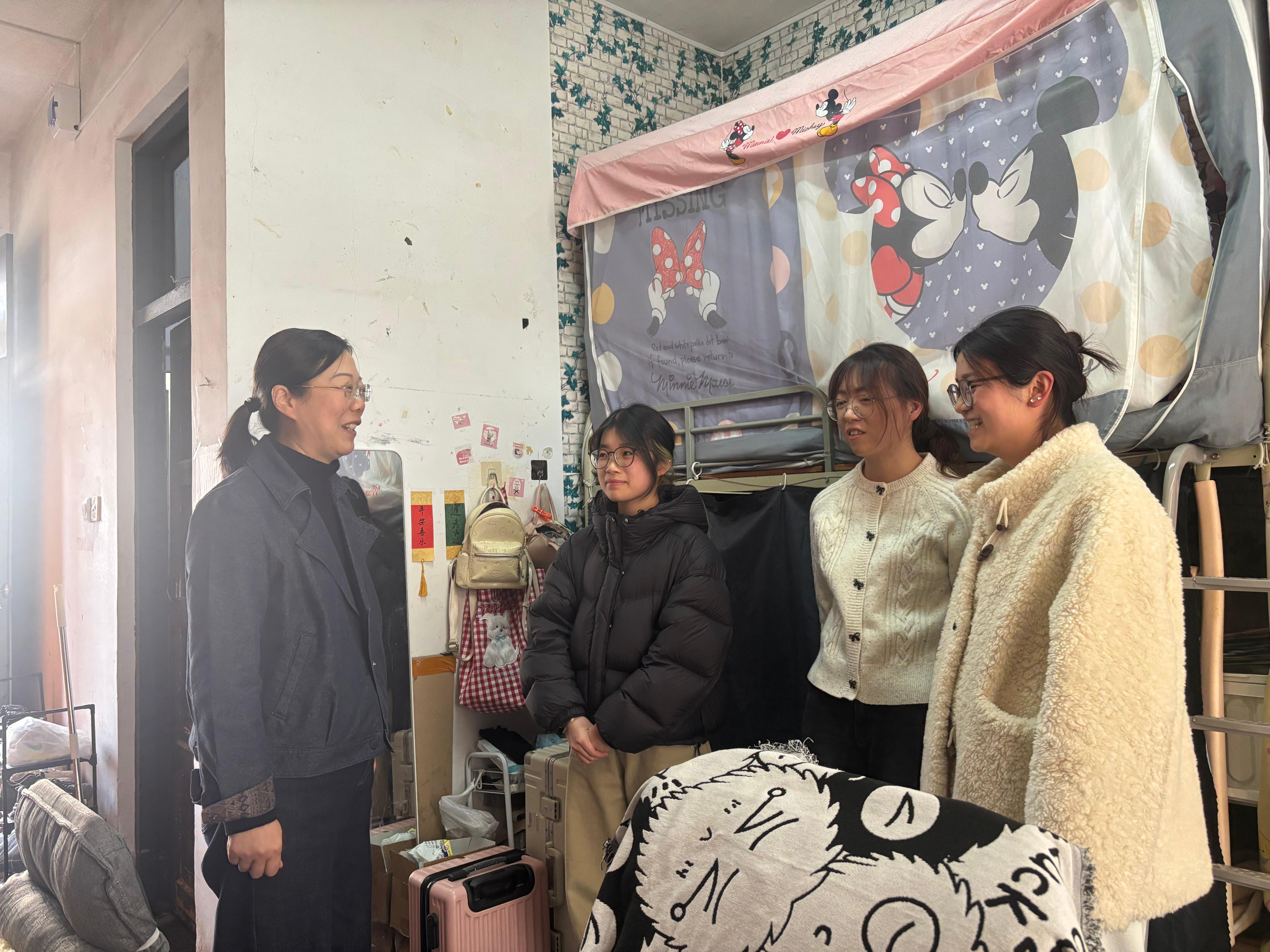 同时,学院班子认真检查宿舍安全卫生状况,排查用电隐患,提醒同学们遵守宿舍管理规定,增强安全防范意识。学院领导特别强调,学生宿舍不仅是生活场所,更是思想政治教育的重要阵地,要共同营造安全、文明、舒适的育人环境。