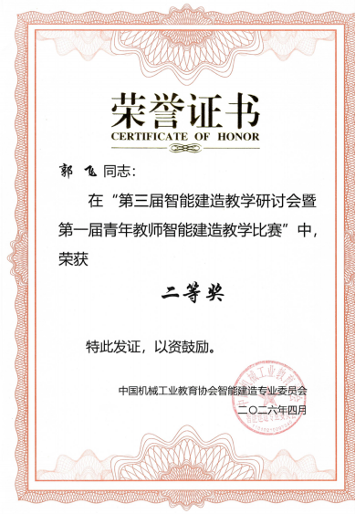 4月18日下午,我院郭飞老师参加了第一届青年教师智能建造教学比赛,同近百位全国各地优秀青年教师同台角逐,获得比赛二等奖。通过比赛,促进教师对智能建造前沿技术的应用,锤炼了教师的教学技能,为今后参与教学类竞赛提供宝贵经验和授课思路。